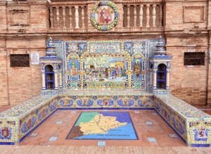 The coach took about three hours from Granada to our modern hotel in Seville in the late afternoon. Seville is a bustling, modern city with a 2,000-year-old history and is the capital of Andalusia. Historically, it was a rich area, especially when it was Spain’s main port during the colonization of South America. It welcomed the blend of Muslim, Jewish, and Christian people and cultures.